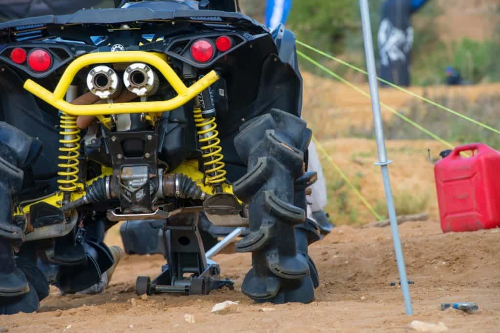 The base Rancher uses a Swingarm Solid Rear Axle. It’s a steel bar connecting the two rear wheels. When the left tire hits a bump, the right tire tilts.